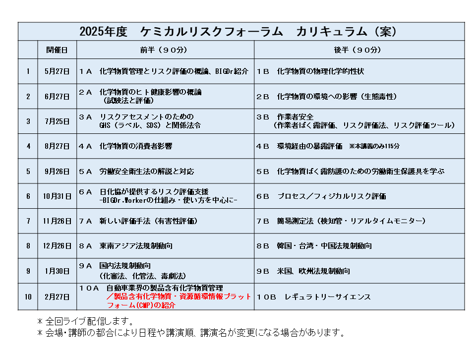 ケミカルリスクフォーラム研修コース カリキュラム